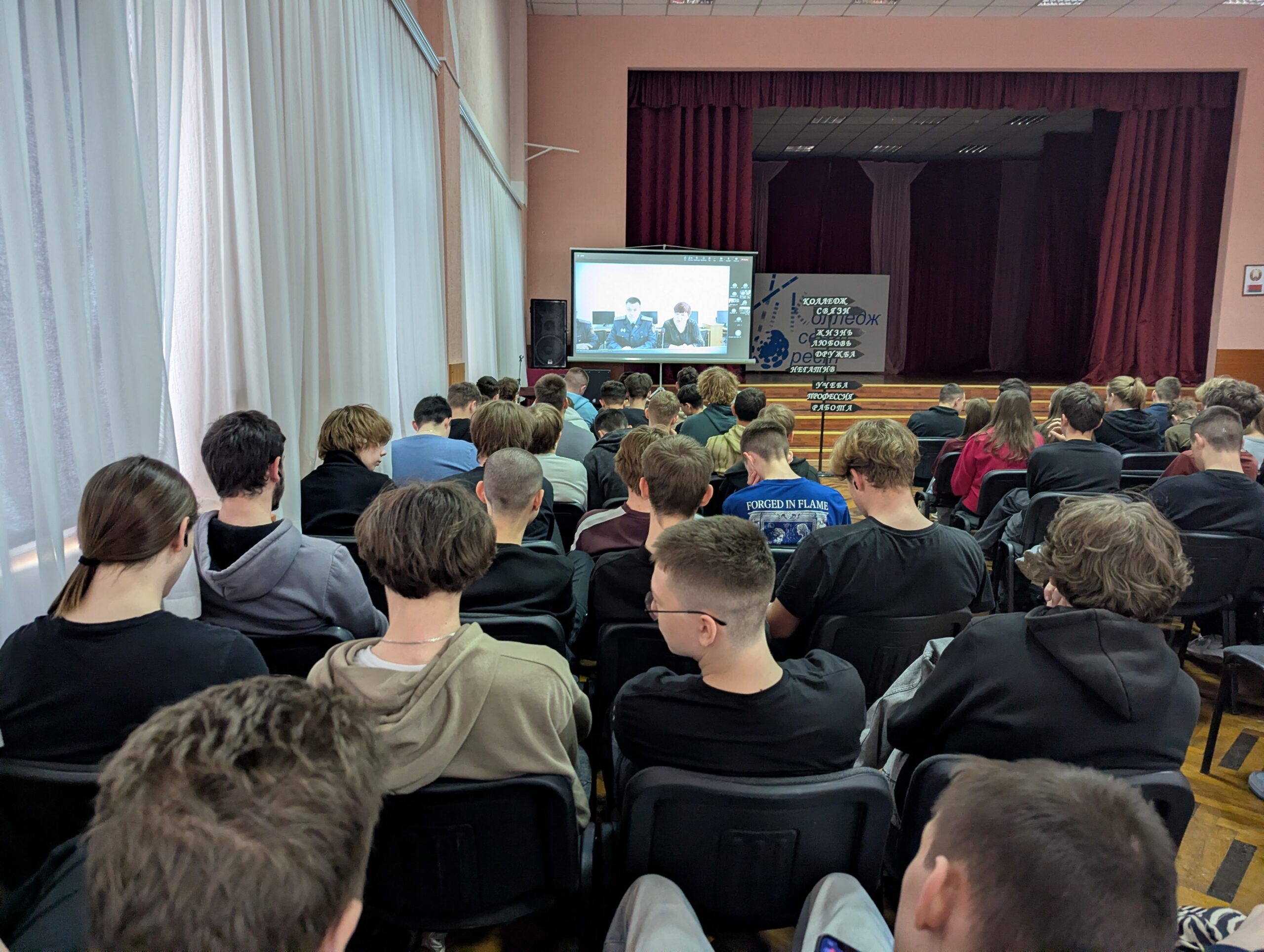 23.04.2026 Урок мужества у учащихся старших курсов колледжа связи провел начальник гарнизонного узла 127-й Гвардейской ордена Красной звезды бригады связи майор Андрей Андреевич Яковлев. Он рассказал учащимся, теперь уже будущим