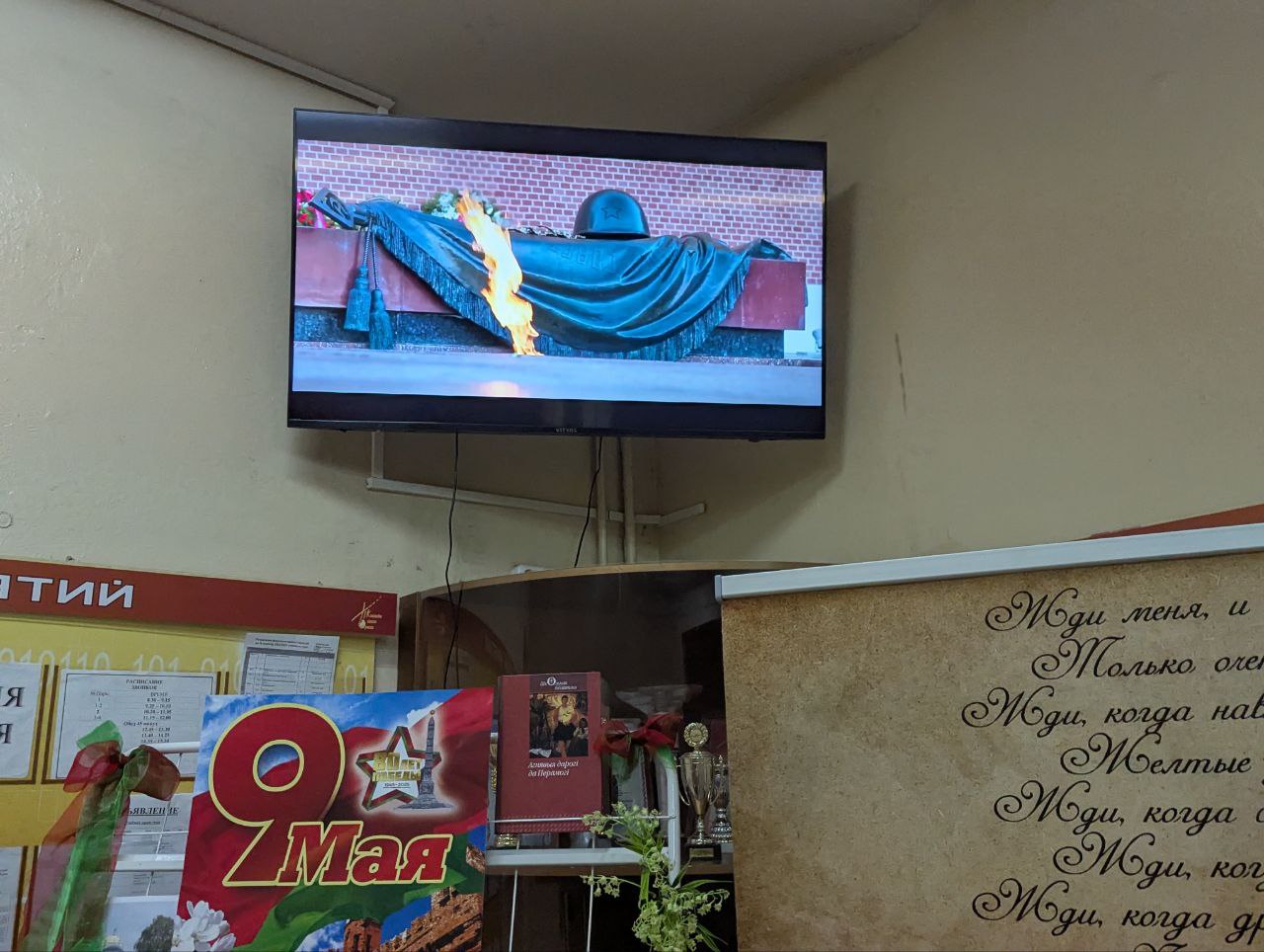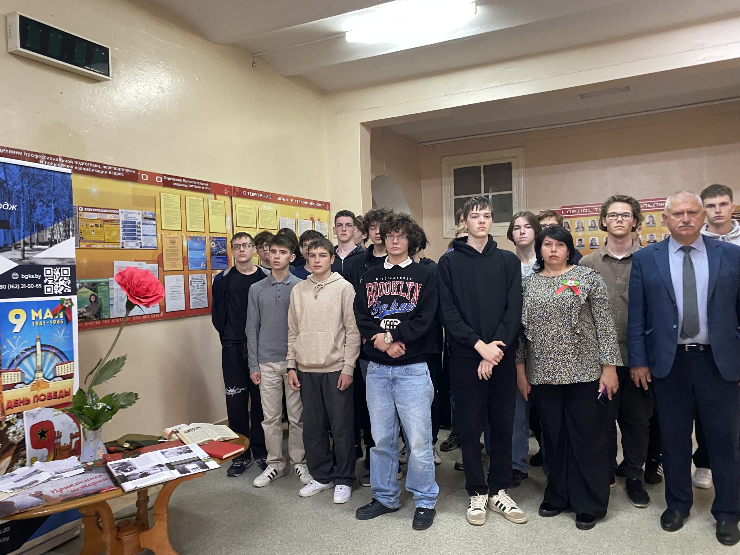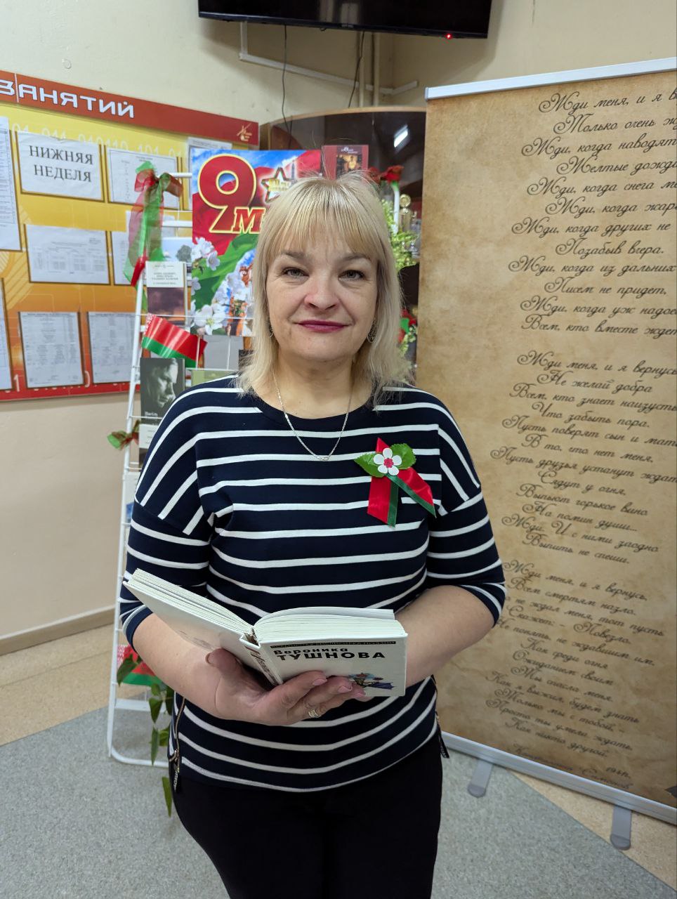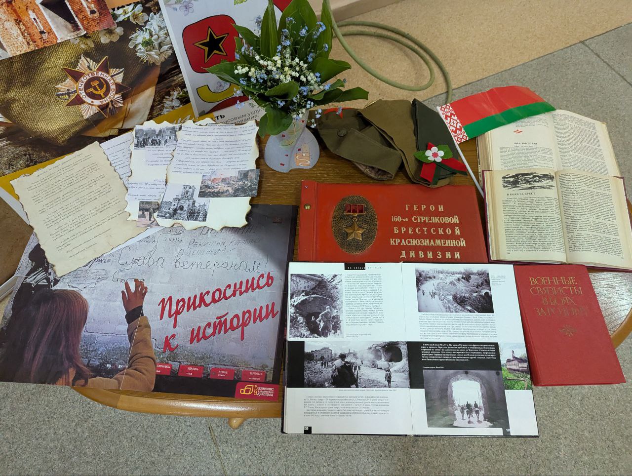 08.05.25 в фойе колледжа оформлена фотозона ко Дню Победы. Сотрудники библиотеки организовали выставку литературы писателей и поэтов о войне. Центральное место занимал стенд, на котором можно было прочитать стихотворение Константина Симонова «Жди меня». На экране транслировался виртуальный обзор литературы «Прочитать о войне, чтобы помнить». Рядом находились книги военной тематики об освобождении Бреста и письма-сочинения учащихся «Письмо прадеду». Учащиеся и преподаватели читали стихи белорусских и советских поэтов о войне.