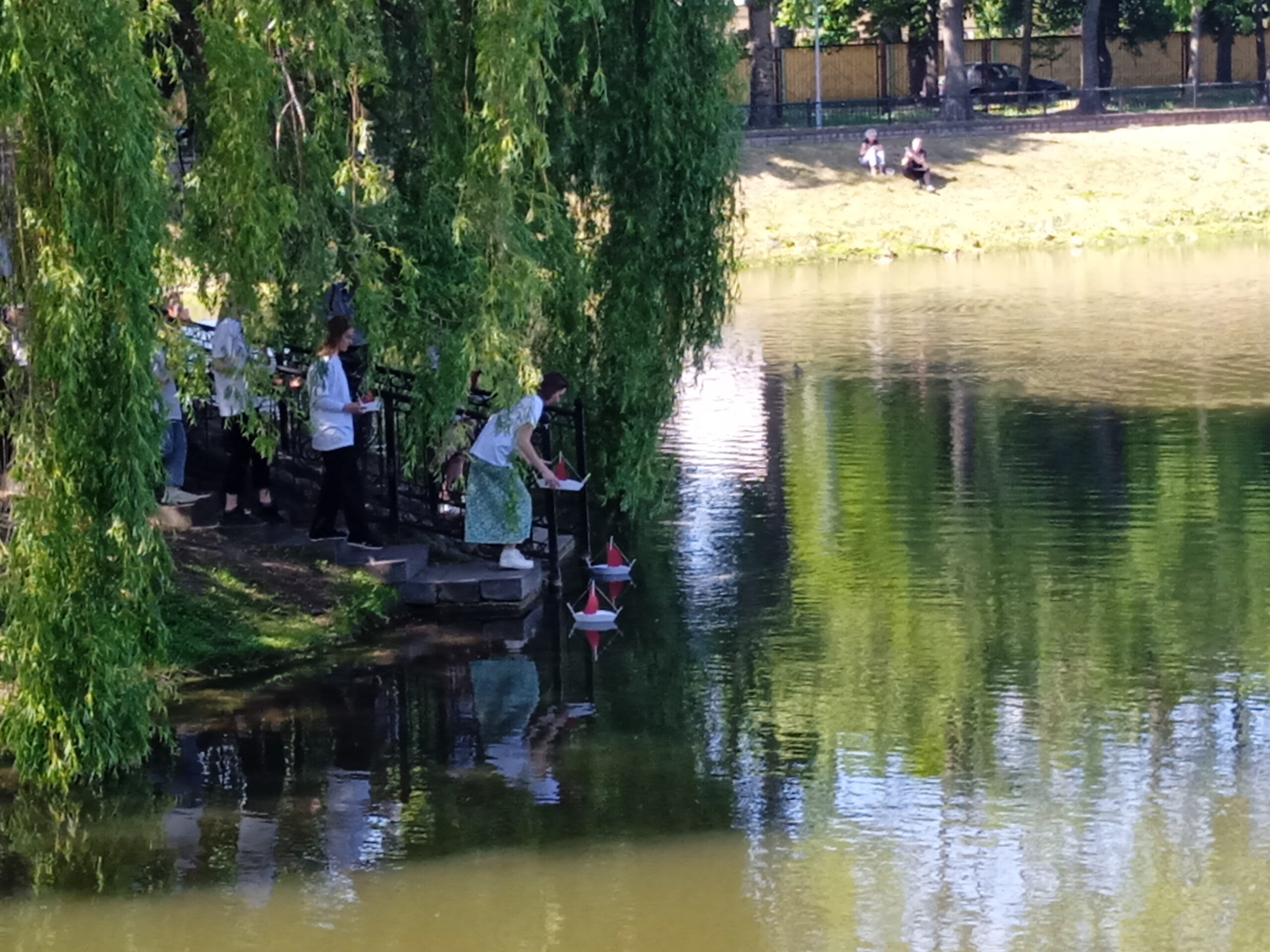 В завершение участники акции в память об умерших от СПИДа пустили на воду бумажные кораблики.