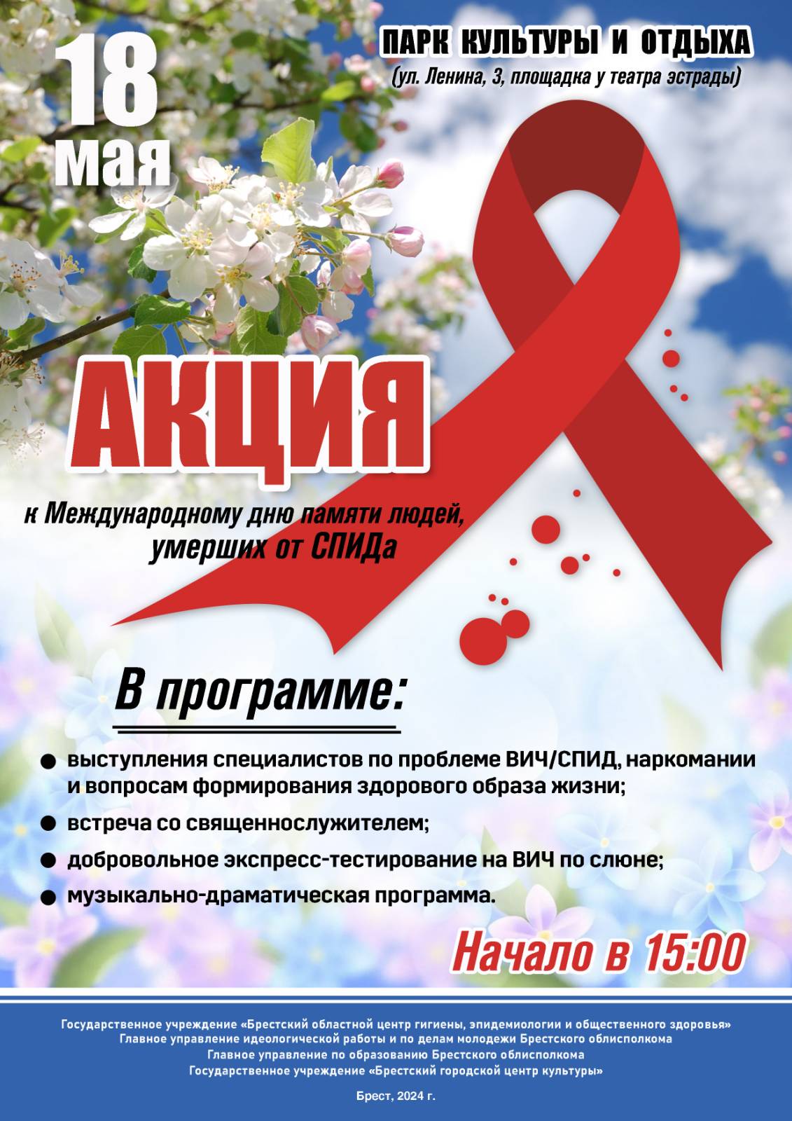 18.05.24 обучающиеся в группах Д-11, СВТ-1 приняли участие в акции к Международному дню памяти людей, умерших от СПИДа. Мероприятие проходило в Парке культуры и отдыха. В программе: