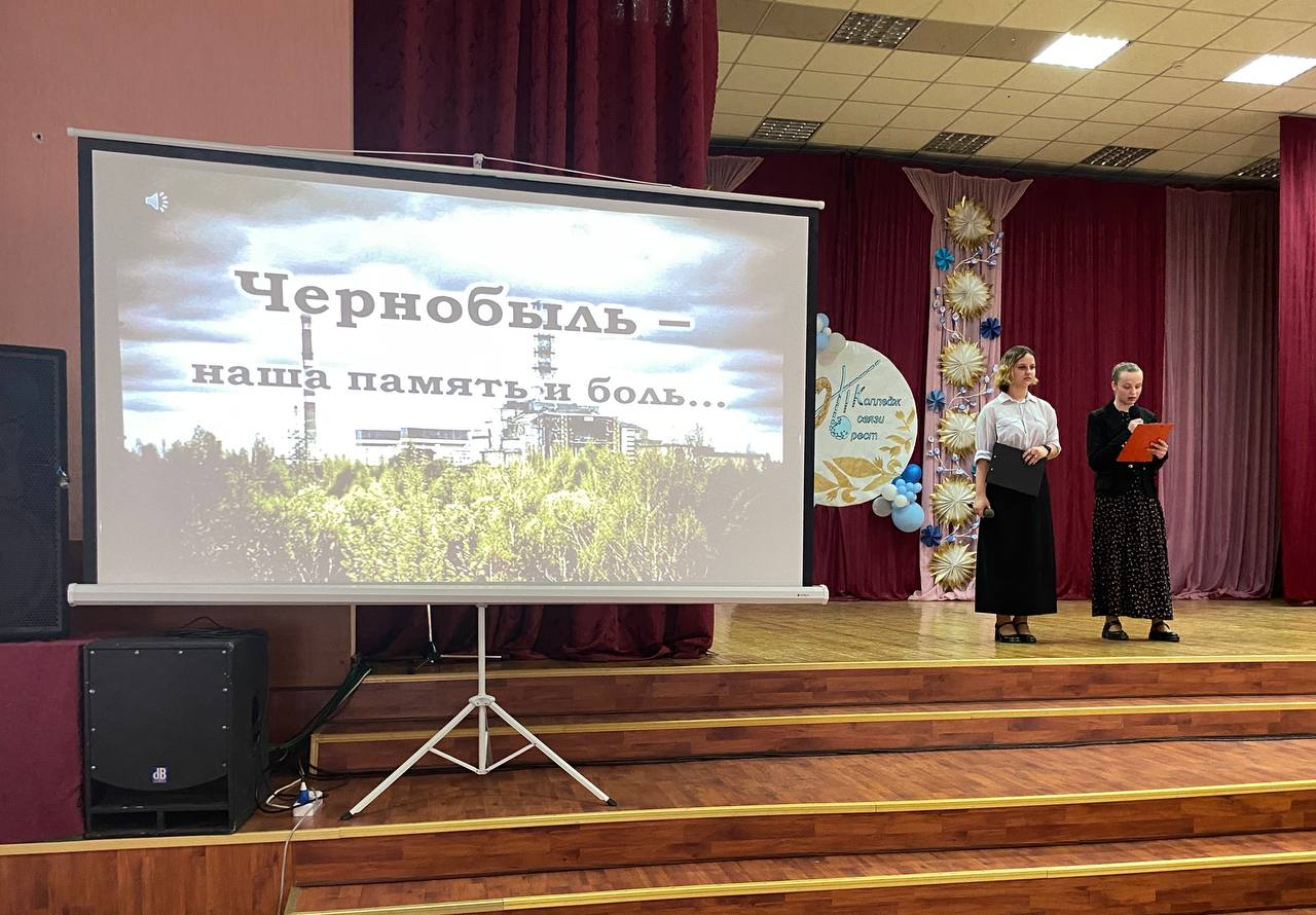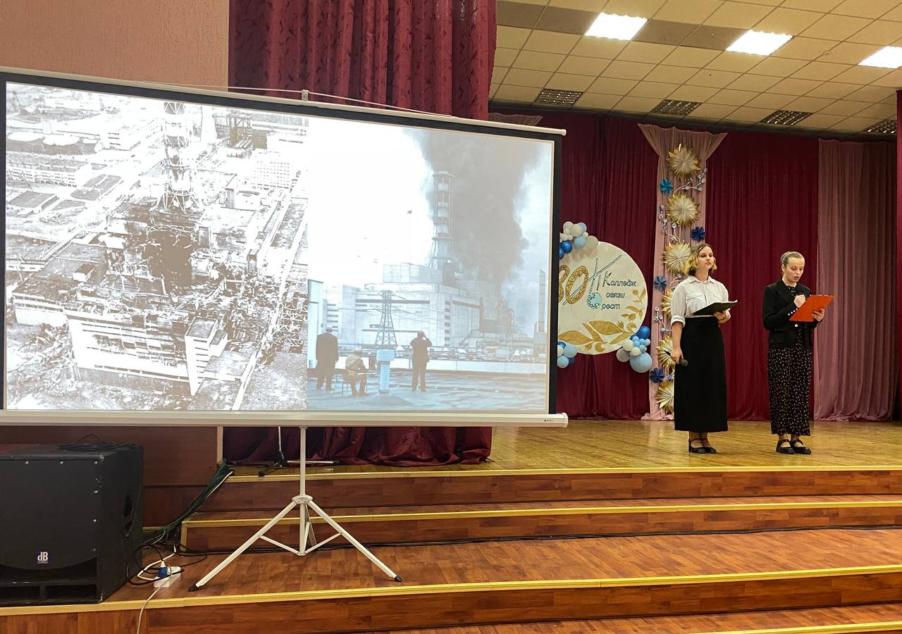 Литературно-музыкальный этюд посвящен одной из самых страшных техногенных катастроф XXвека. Ведущие рассказали о событиях, которые происходили в ночь 26 апреля 1986. На экране документальные кадры взрыва, тушения пожара, рассказ о героях пожарниках, которые приняли первый удар на себя. Обучающиеся минутой молчания почтили память героев, скончавшихся от полученных ожогов. Ценой своей жизни они спасли тысячи человеческих жизней, предотвратили дальнейшее распространение радиации. В память о них прозвучала песня в исполнении Ани Кунцевич, учащейся группы Д-12.