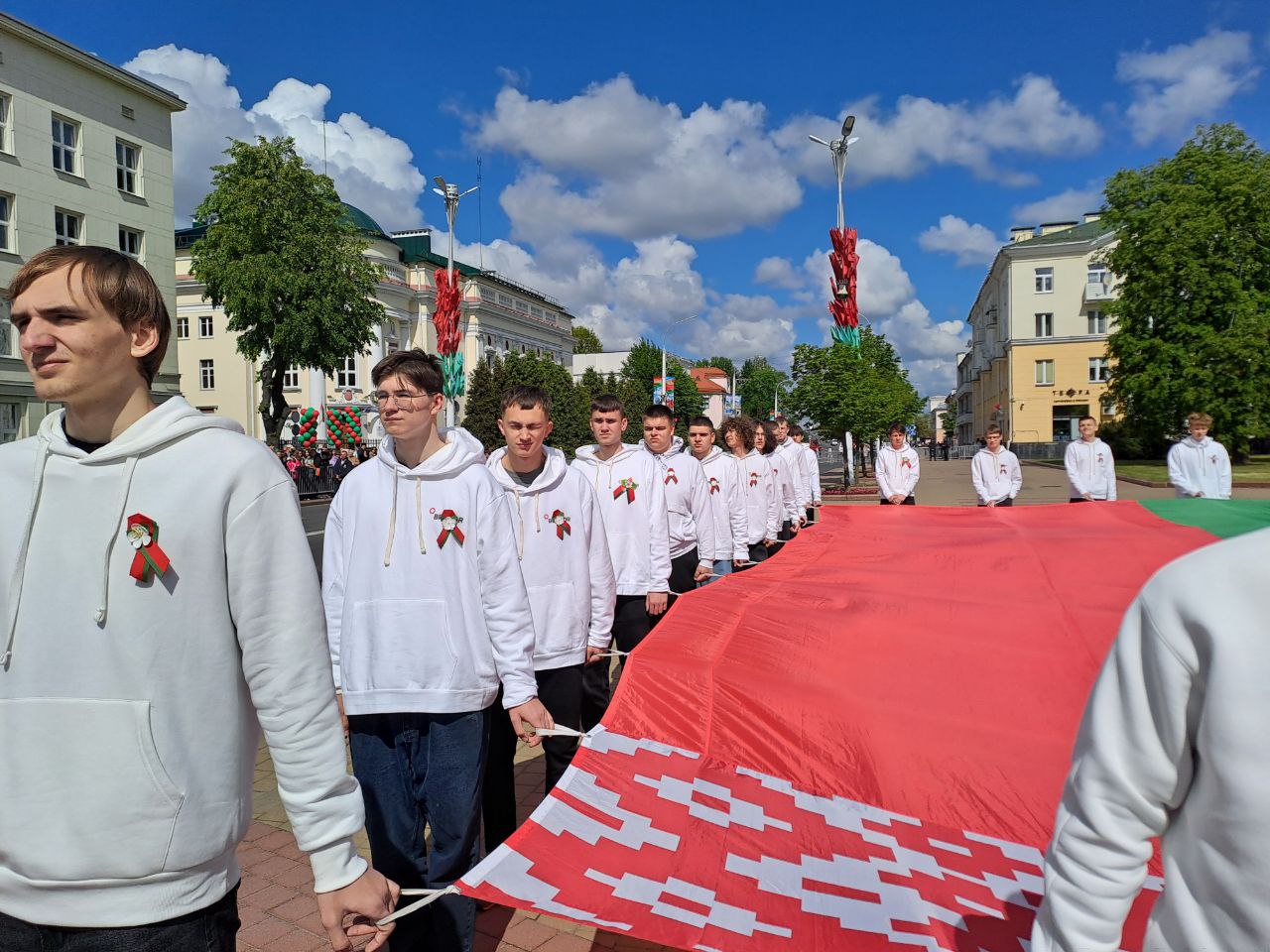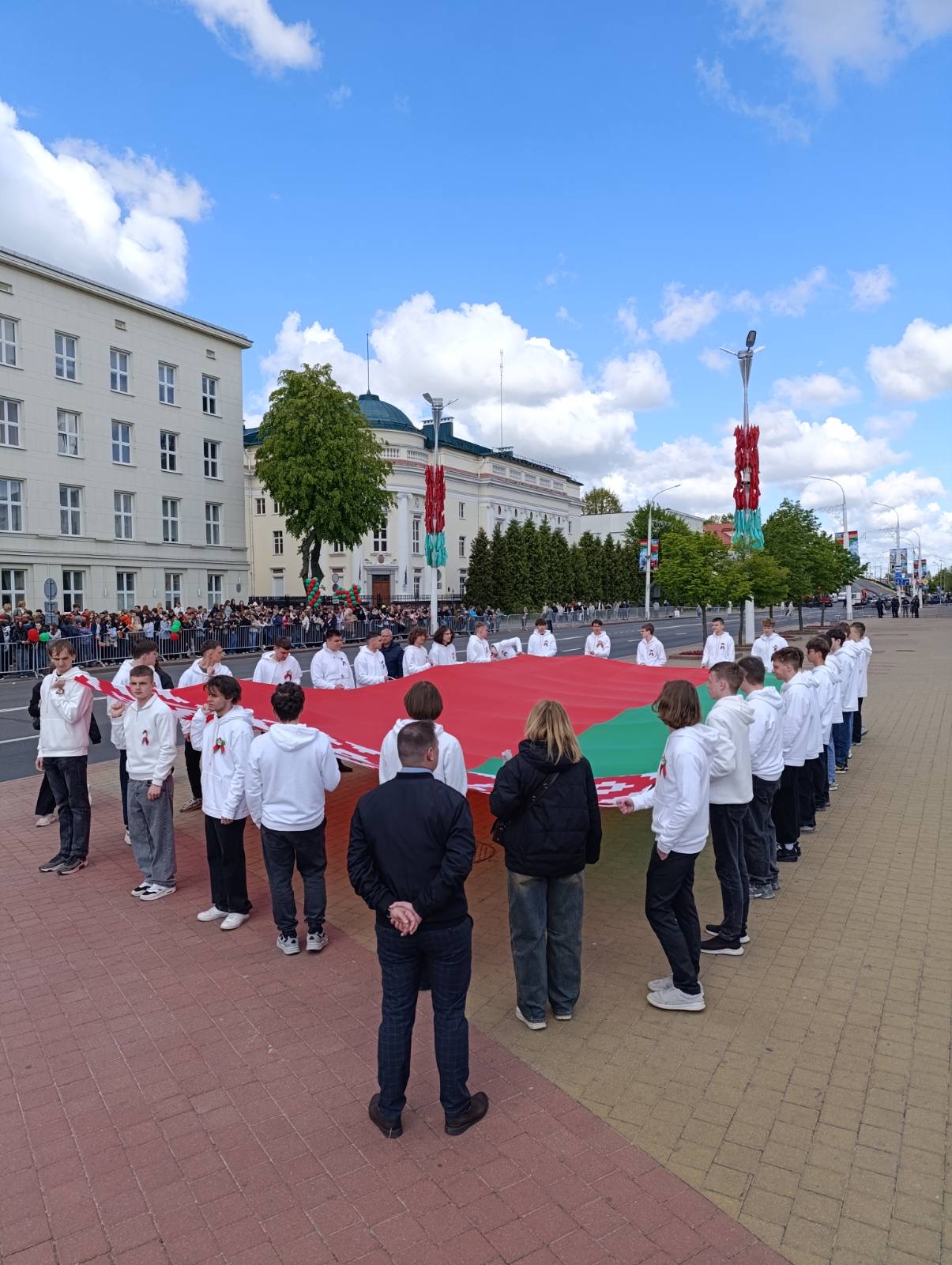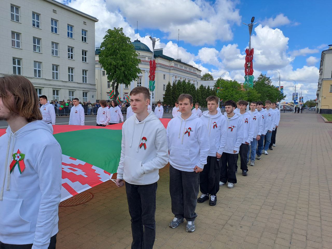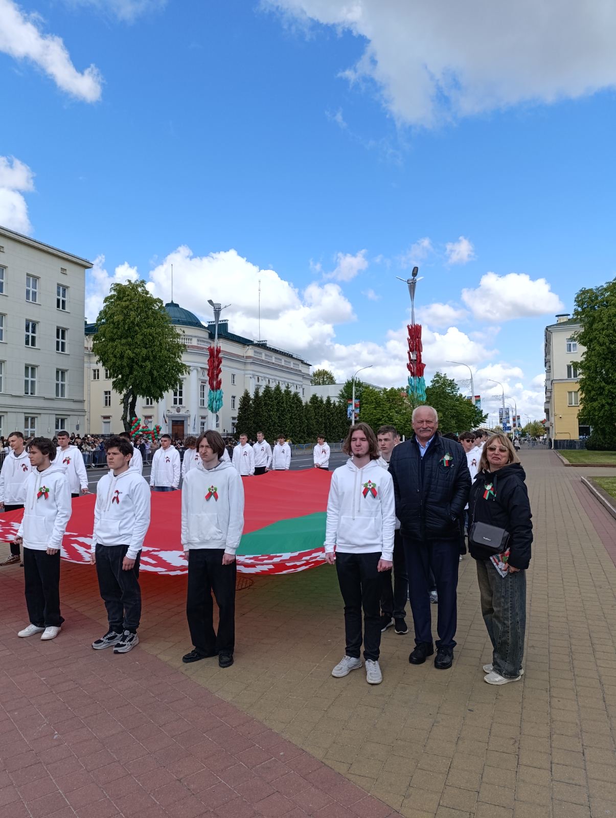 11.05.25 учащиеся колледжа приняли участие в торжественном митинге ко Дню Государственного герба Государственного флага и Государственного гимна Республики Беларусь. Им выпала большая честь нести символ независимости страны – Государственный флаг Беларуси. Мы гордимся нашими учащимися, которые с гордостью несли Государственный флаг, берегут и поддерживают традиции страны.