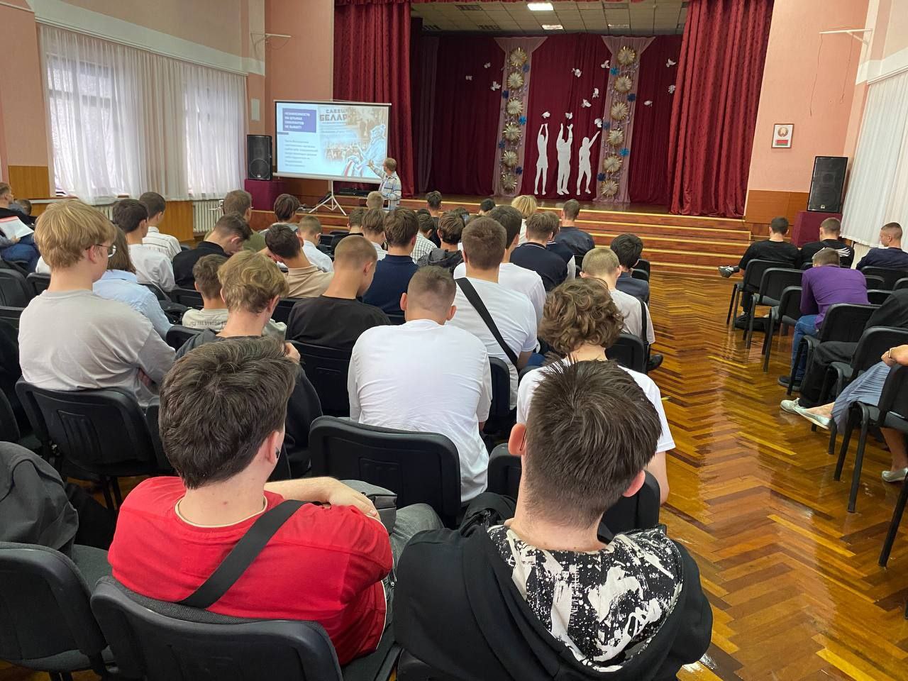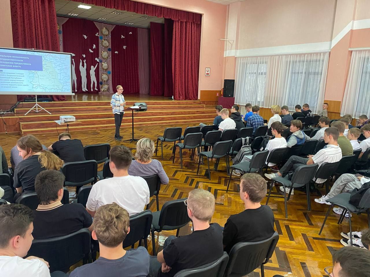 Максим поздравил учащихся с праздником и рассказал о событиях 1921-1939 годов на территории Западной Беларусь. Ребята активно участвовали в диалоге и высказывали своё мнение, видно, что современная молодёжь искренне интересуется историей своей страны и своего народа.