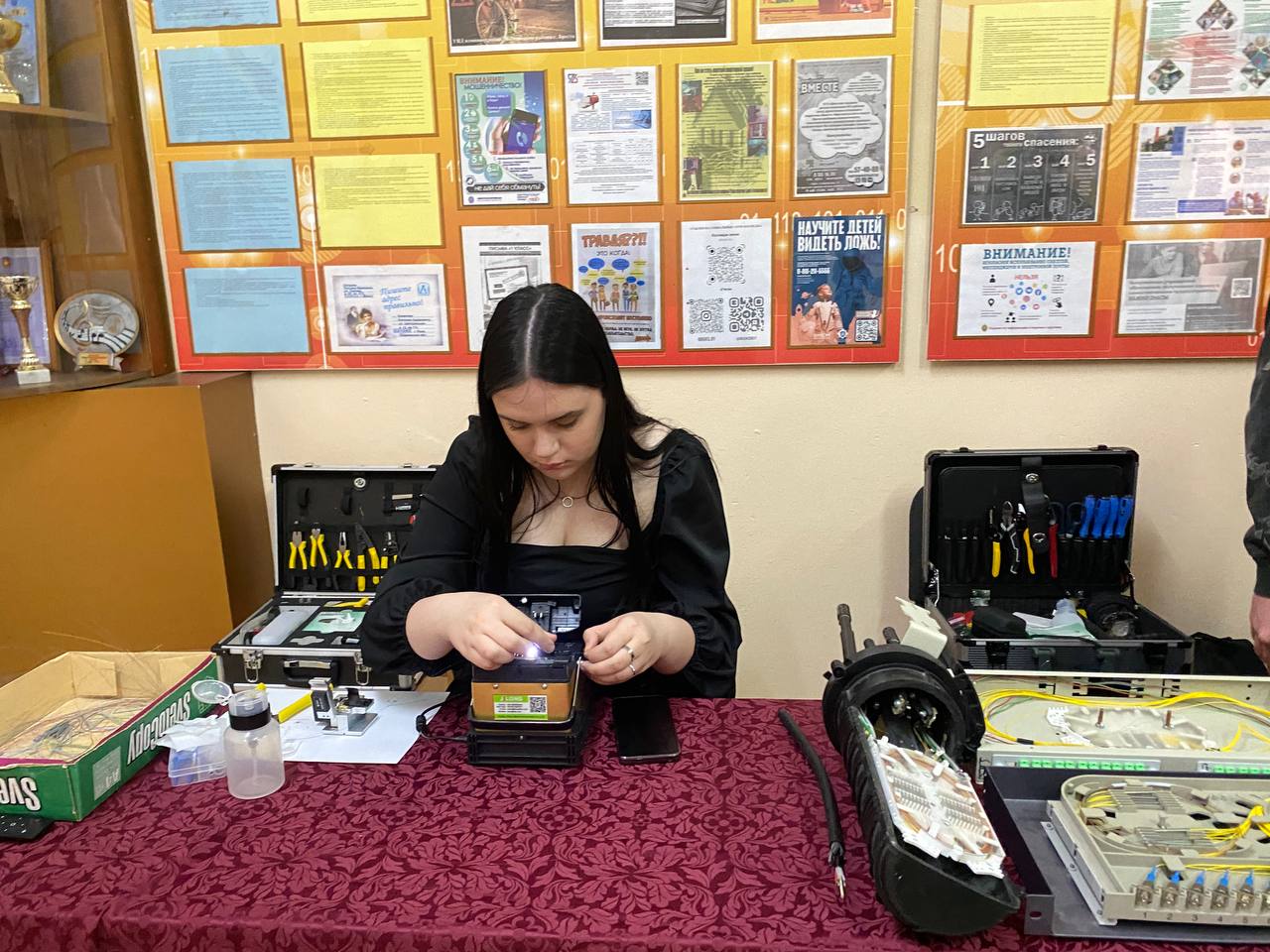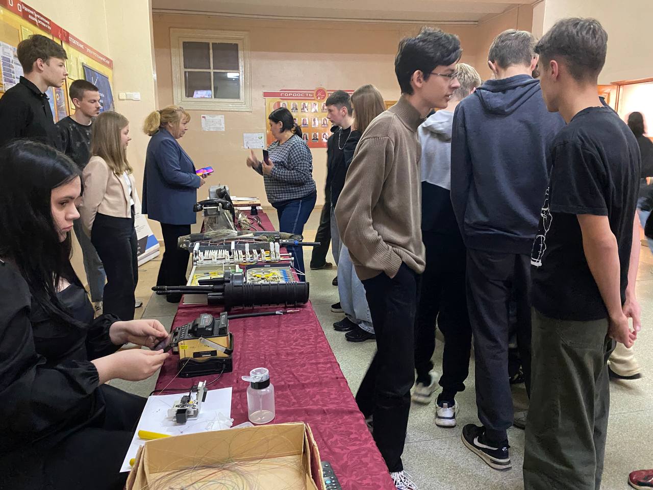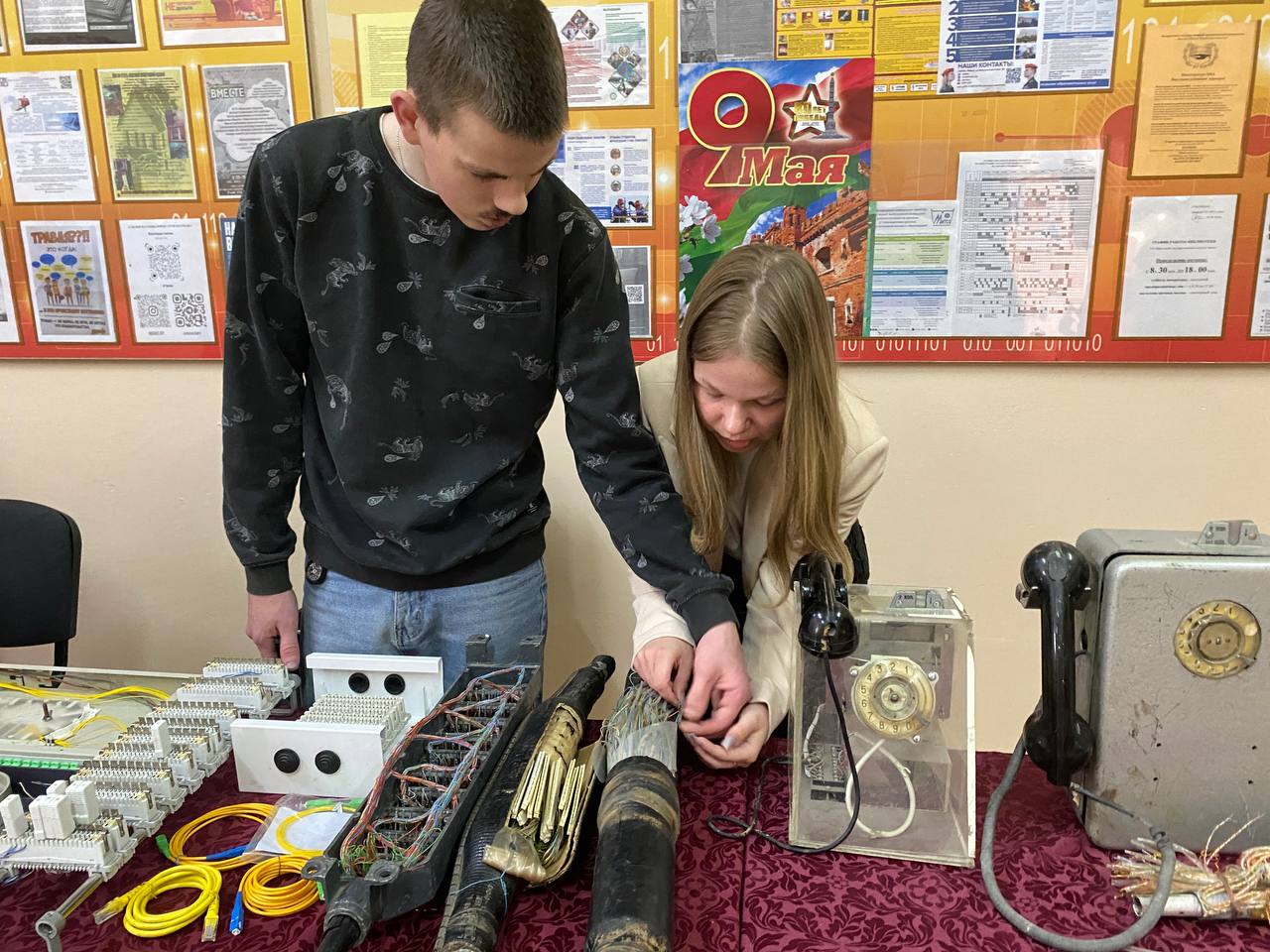 К этой дате в колледже организована выставка, где учащиеся могли увидеть разновидности старых телефонных аппаратов, виды кабелей, различные инструменты, сварочный аппарат для спайки оптоволокна. Учащиеся старших курсов провели мастер-класс по сращиванию и сварке оптоволокна. Много информации по работе выставки, учащиеся получили от мастера производственного обучения Овчинниковой Валентины Владимировны.