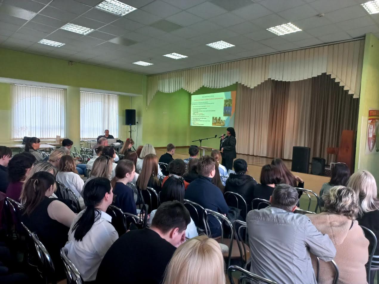 03.04.25. профориентацию на совместном собрании родителей и учеников 9-х классов средней школы №13 провела заведующий библиотекой колледжа связи Шумко Елена Анатольевна. Будущие абитуриенты и их родители просмотрели видеоролик и презентацию “Приемная кампания 2025”, где представлена вся информация о специальностях, набор на которые будет осуществляться в 2025 году. Присутствующие  на собрании узнали об условиях приема, организациях и предприятиях, которые ждут молодых специалистов колледжа, возможности проживания в общежитии. Видеоролик о новой специальности “Электроснабжение”/квалификация техник-электрик/ дополнил информацию о профессиях, которые можно получить в учебном заведении. Елена Анатольевна ответила на многочисленные вопросы, которые интересовали родителей.