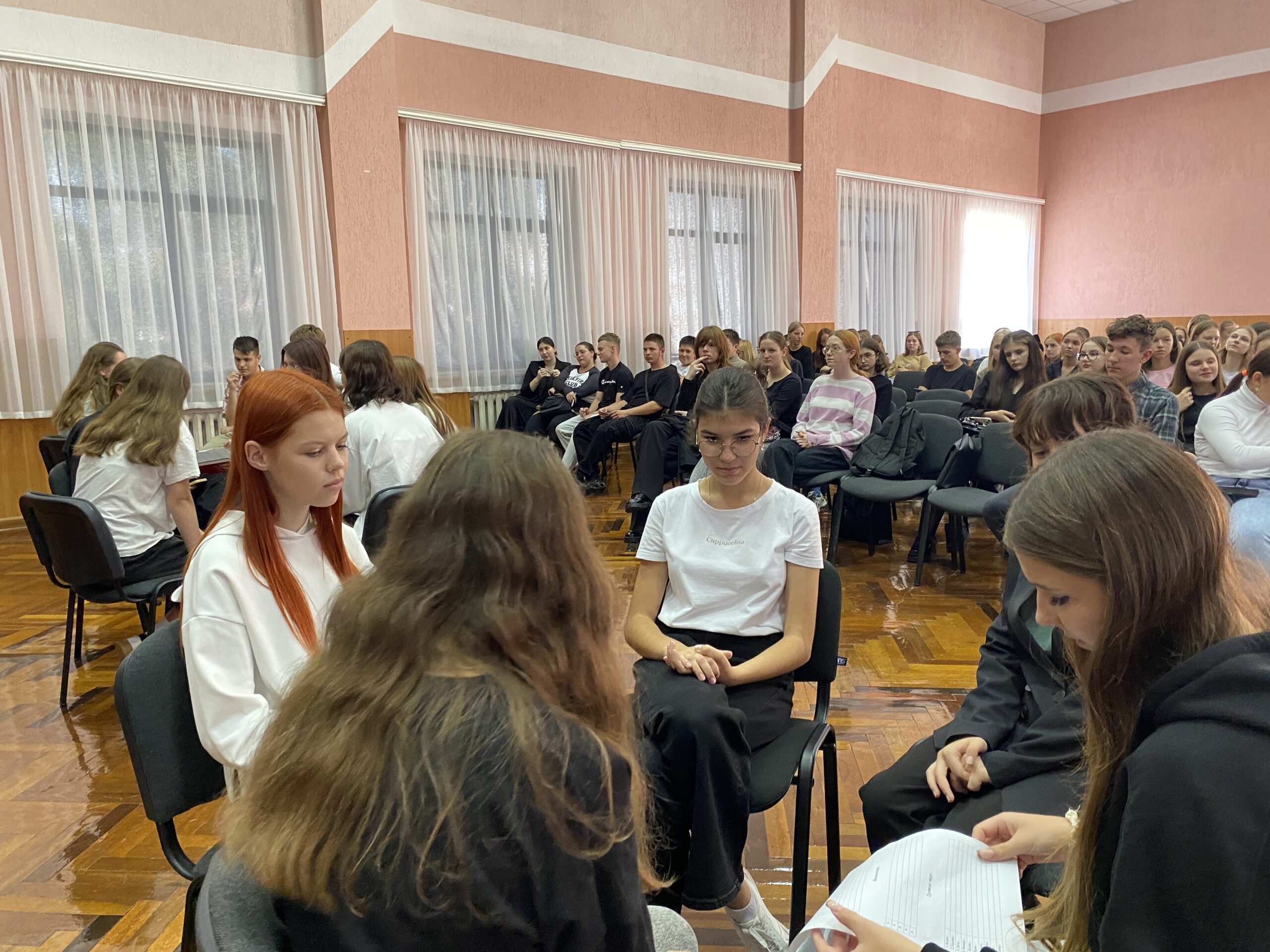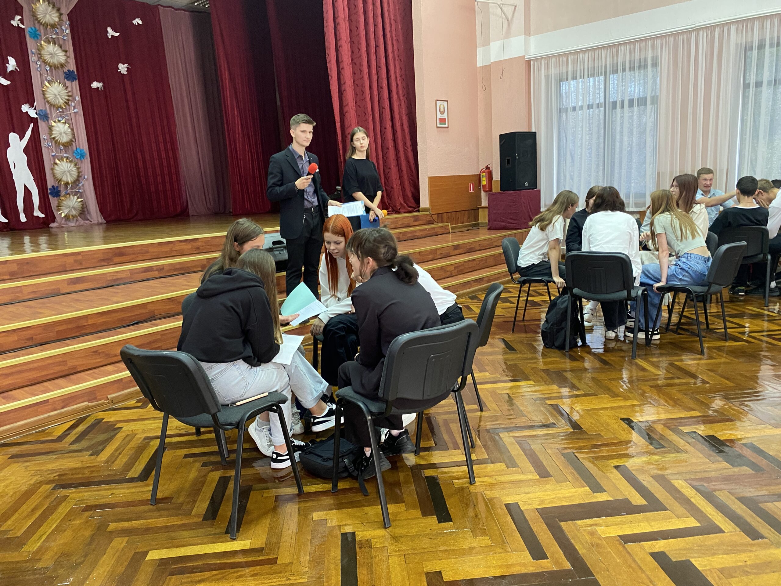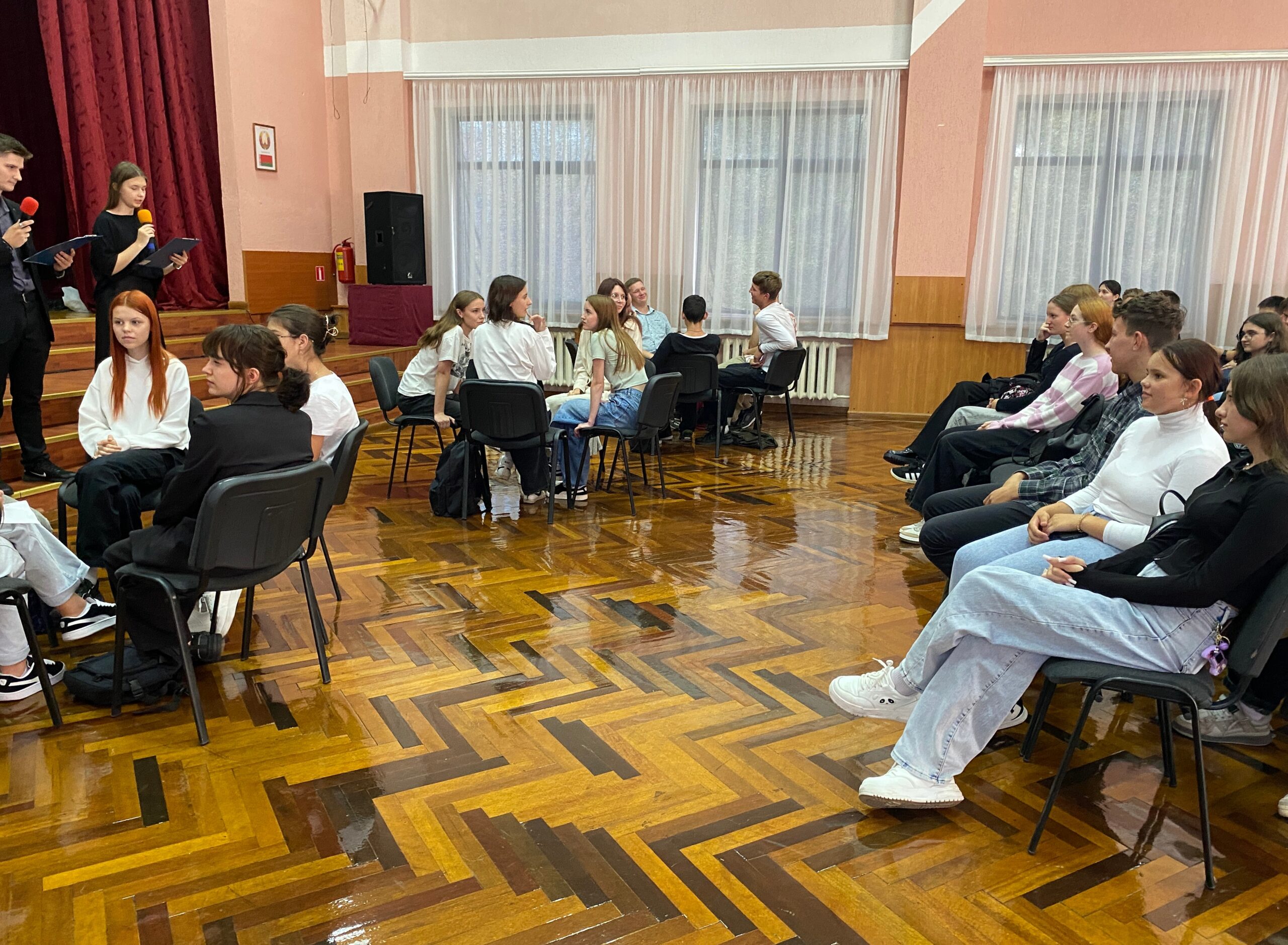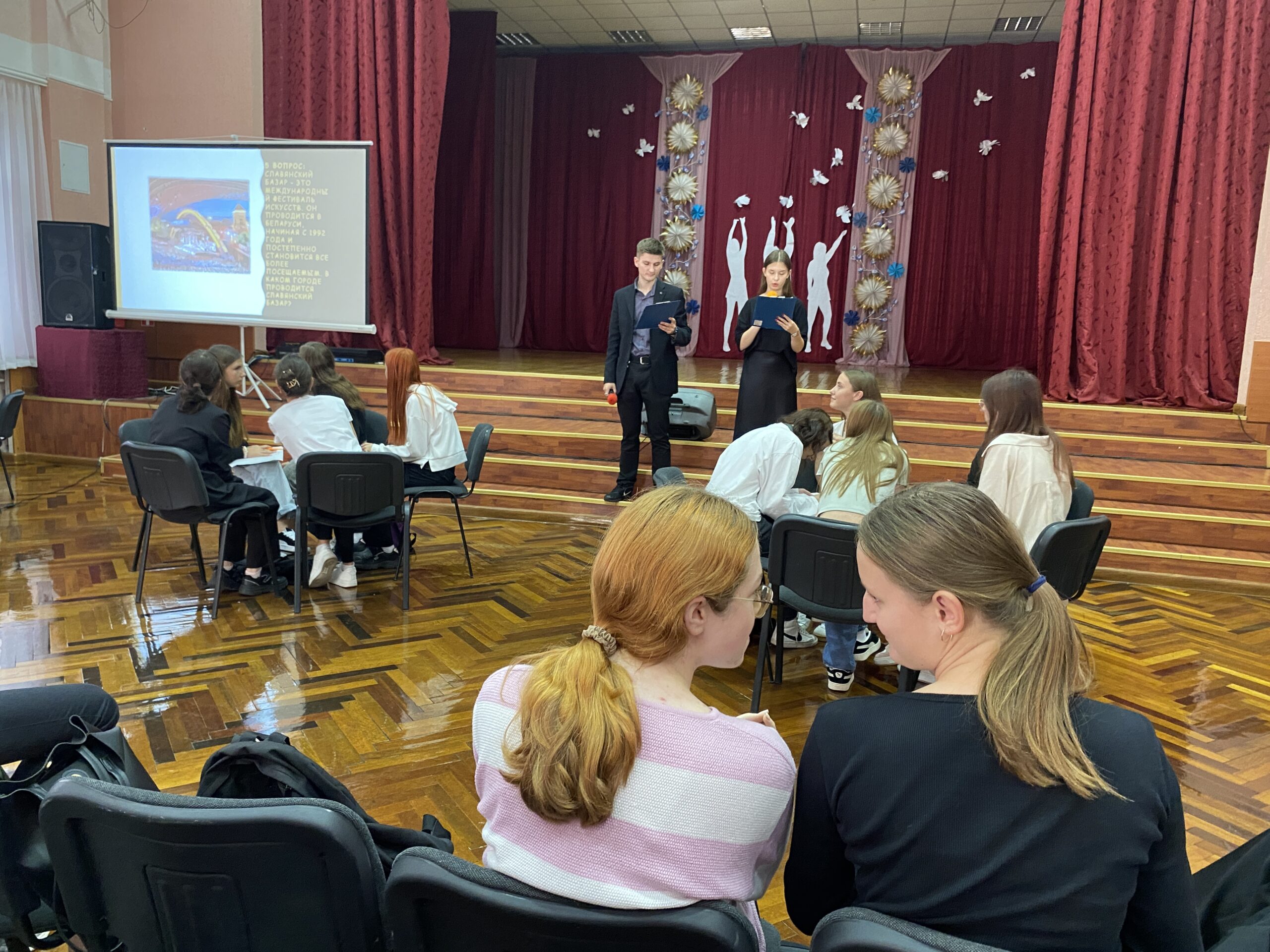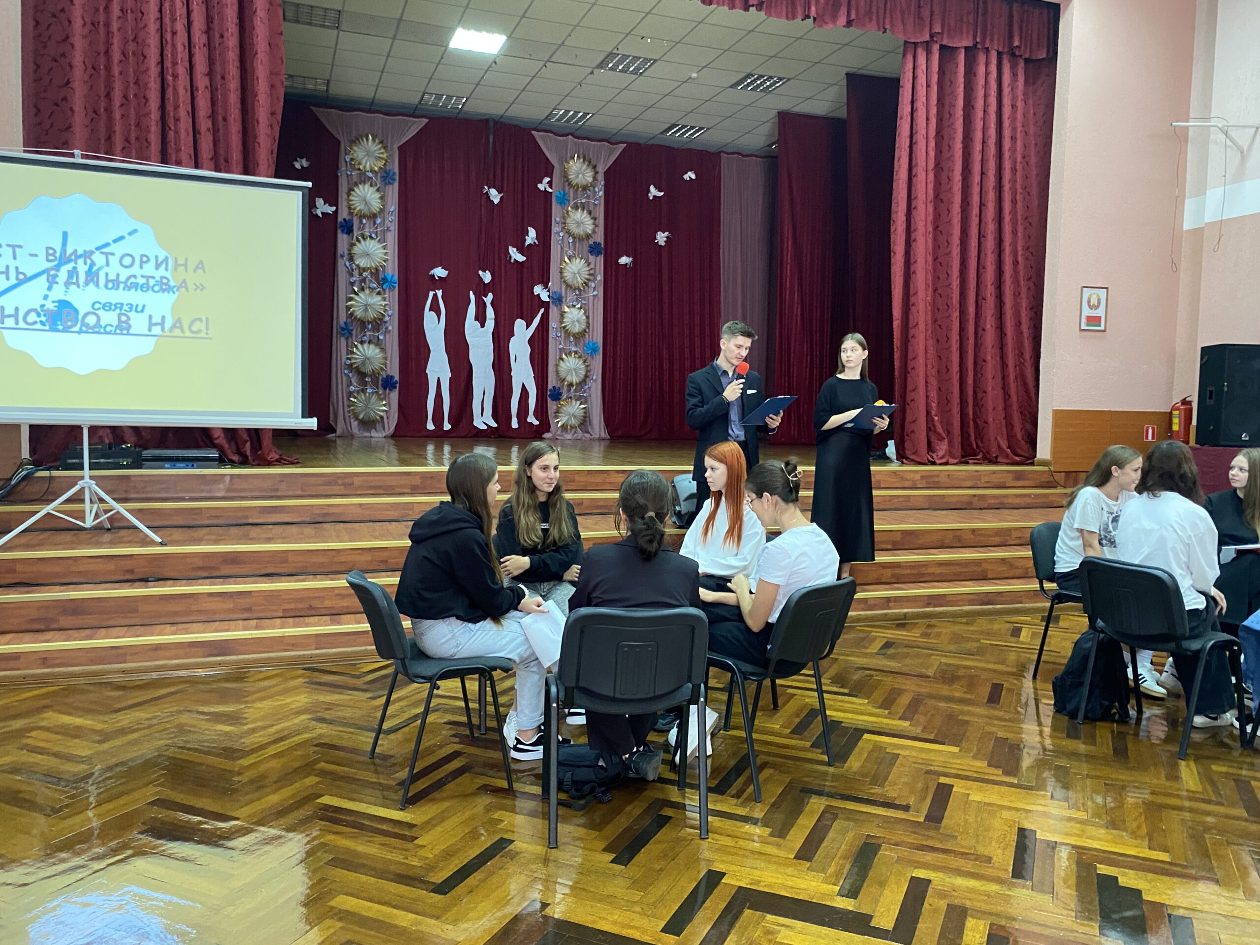17.09.24 в актовом зале колледжа для первокурсников подготовлена квест-викторина. Команды четырех групп отвечали на вопросы на знание истории своей страны, государственных праздников, символов Беларуси, произведений Народных писателей Беларуси. Присутствующие узнали о сложном пути воссоединения в 1939 году территории государства и важности независимого развития современной Беларуси.