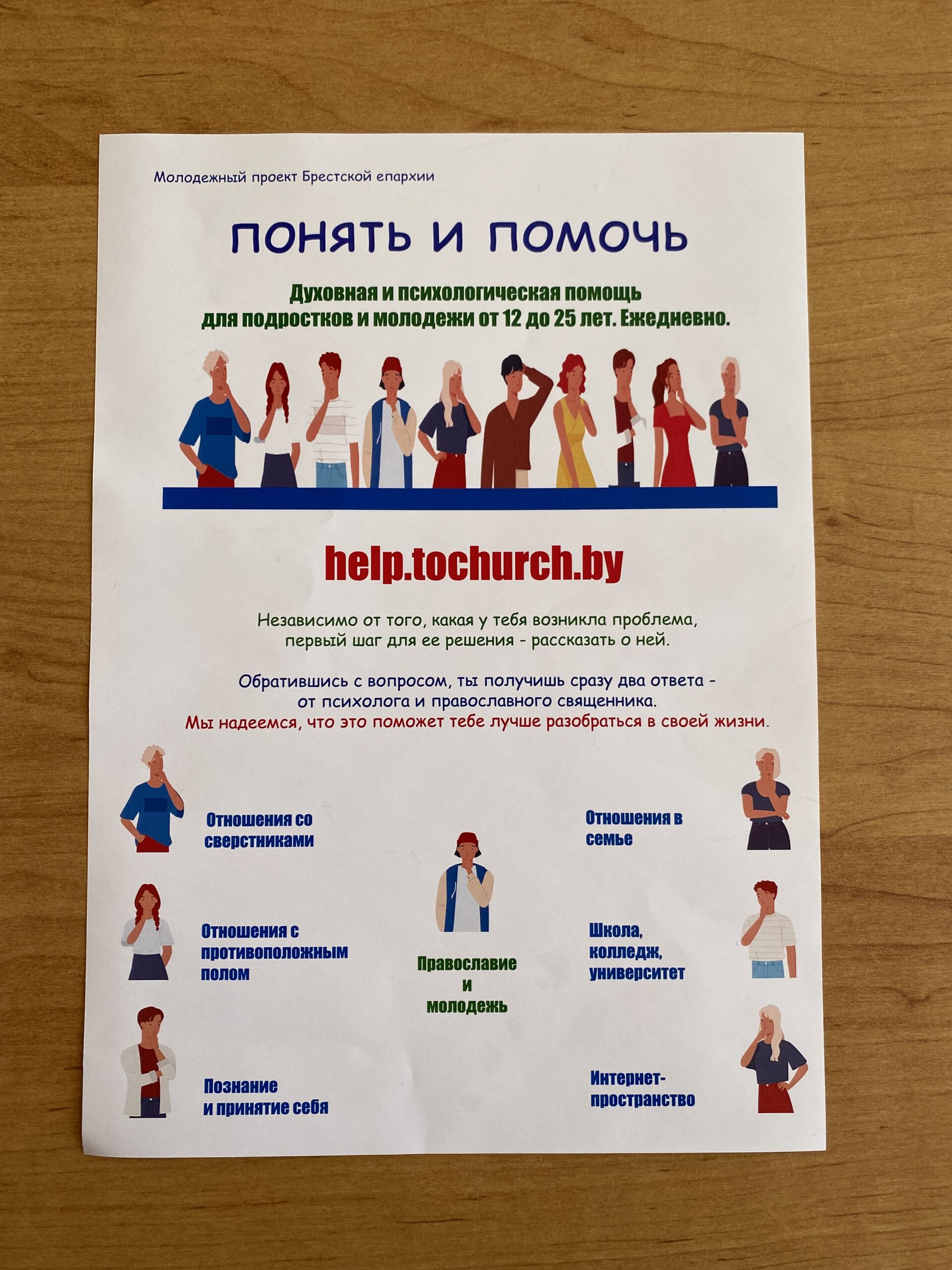 Представители Брестской епархии познакомили учащихся с молодёжным проектом «Понять и помочь» духовной и психологической помощи возрастной категории от 12 до 55 лет. Рассказали об интернет-сайте, куда каждый желающий может отправить в письменном виде волнующий его вопрос и получить сразу два ответа от психолога и православного священника.