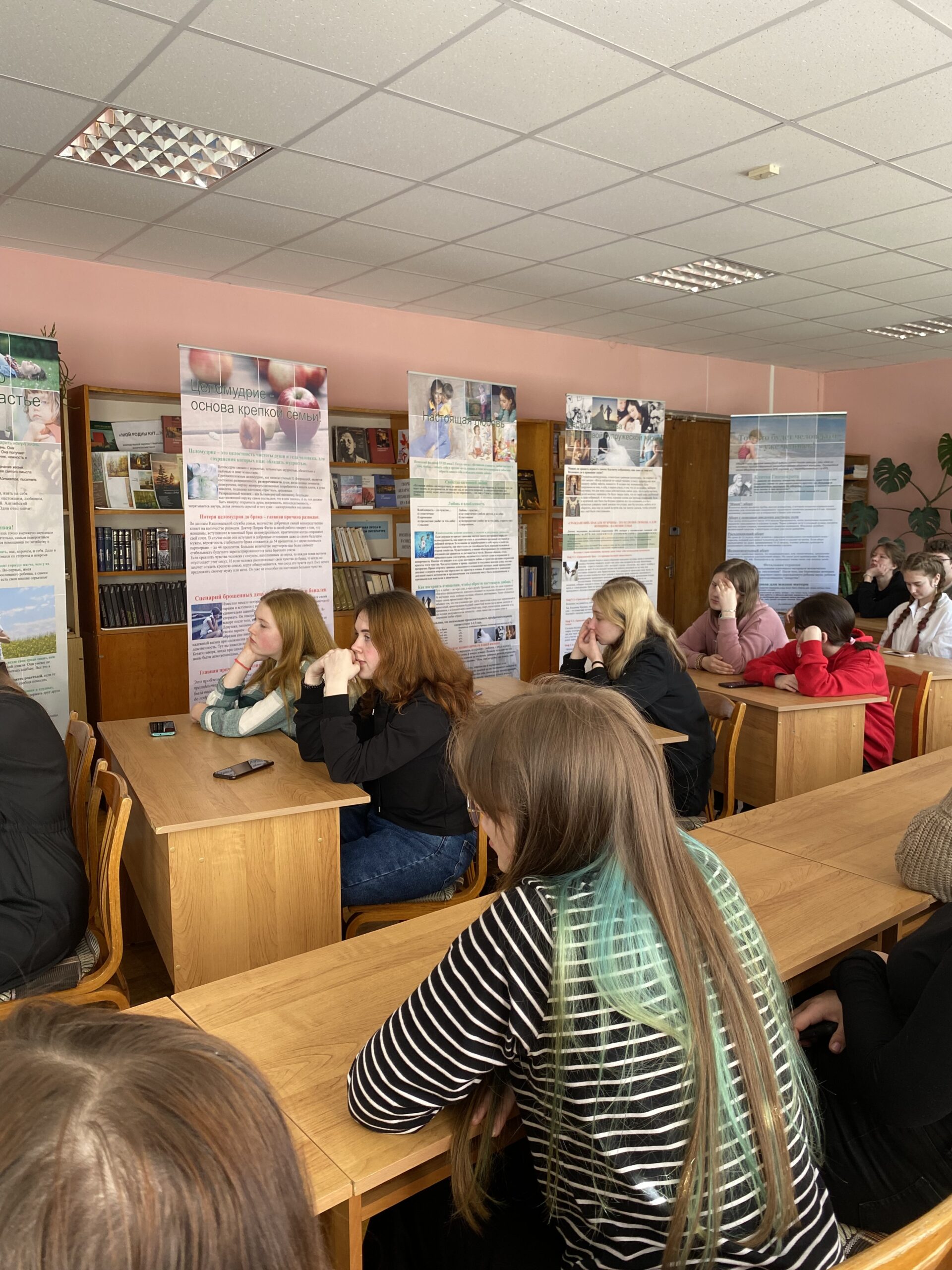 29 апреля в библиотеке колледжа организована встреча учащихся с руководителем Отдела по вопросам семьи, защиты материнства и детства Брестской епархии. При проведении мероприятия Евгения Михайловна использовала материалы выставки «Человеческий потенциал Отечества: традиционная нравственность и семейные ценности». В беседе с учащимися поднимались и обсуждались проблемы, которые волнуют молодых людей: «Смысл жизни», «Настоящая любовь. Верность и целомудрие», «Защита жизни с момента зачатия», «Семья – это настоящее счастье». Учащиеся активно участвовали в обсуждении темы смысла жизни, семьи и семейных ценностей, о браке, об отношении к гражданскому браку, верности, преданности, целомудрии.