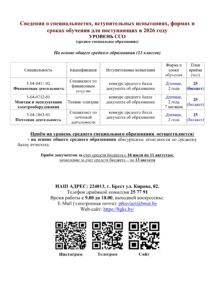 Сроки проведения вступительной кампании для получения среднего специального образования в 2026 году