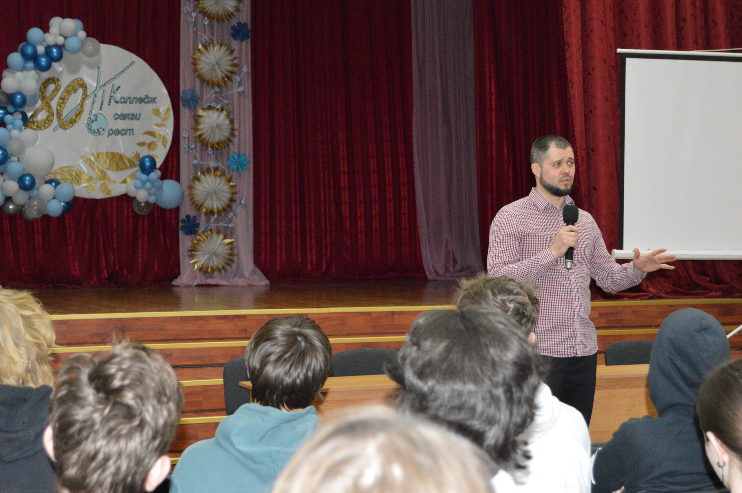 18.03.25 в актовом зале состоялась встреча с врачом наркологом-психиатром УЗ «БОНДТ» Прецкайло Владиславом Игоревичем «Профилактика зависимого поведения в молодёжной среде».
