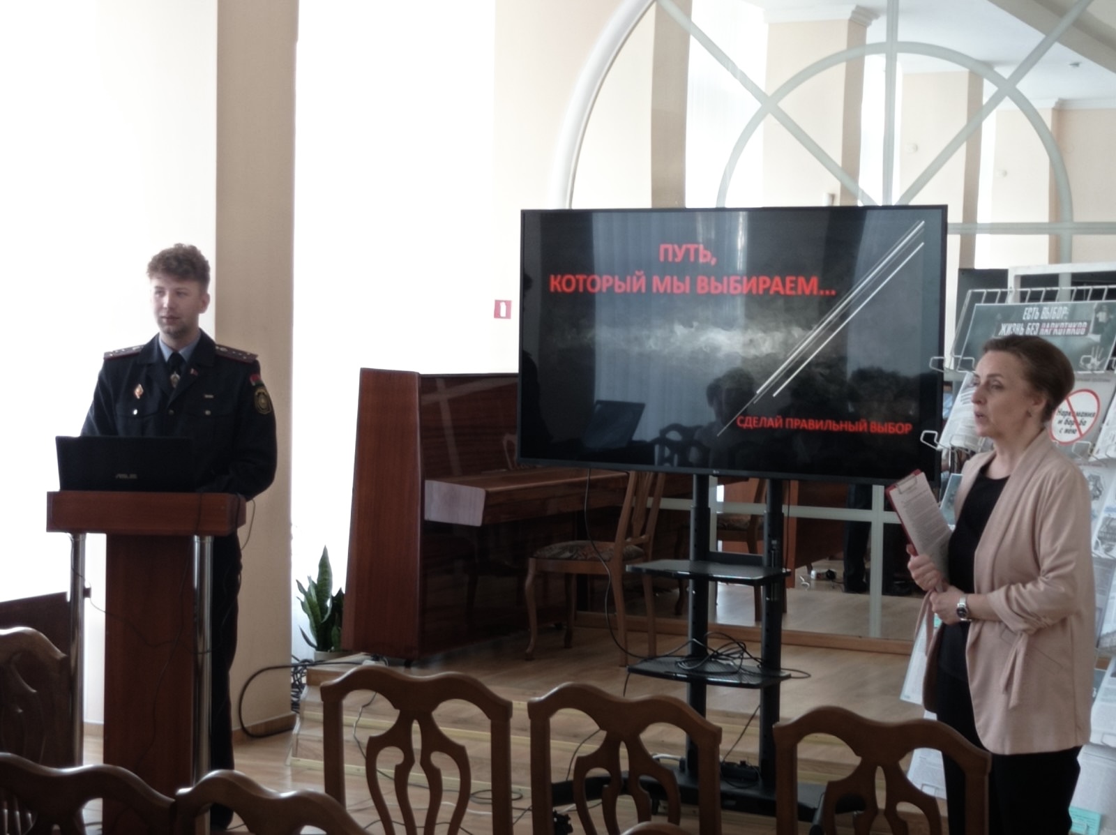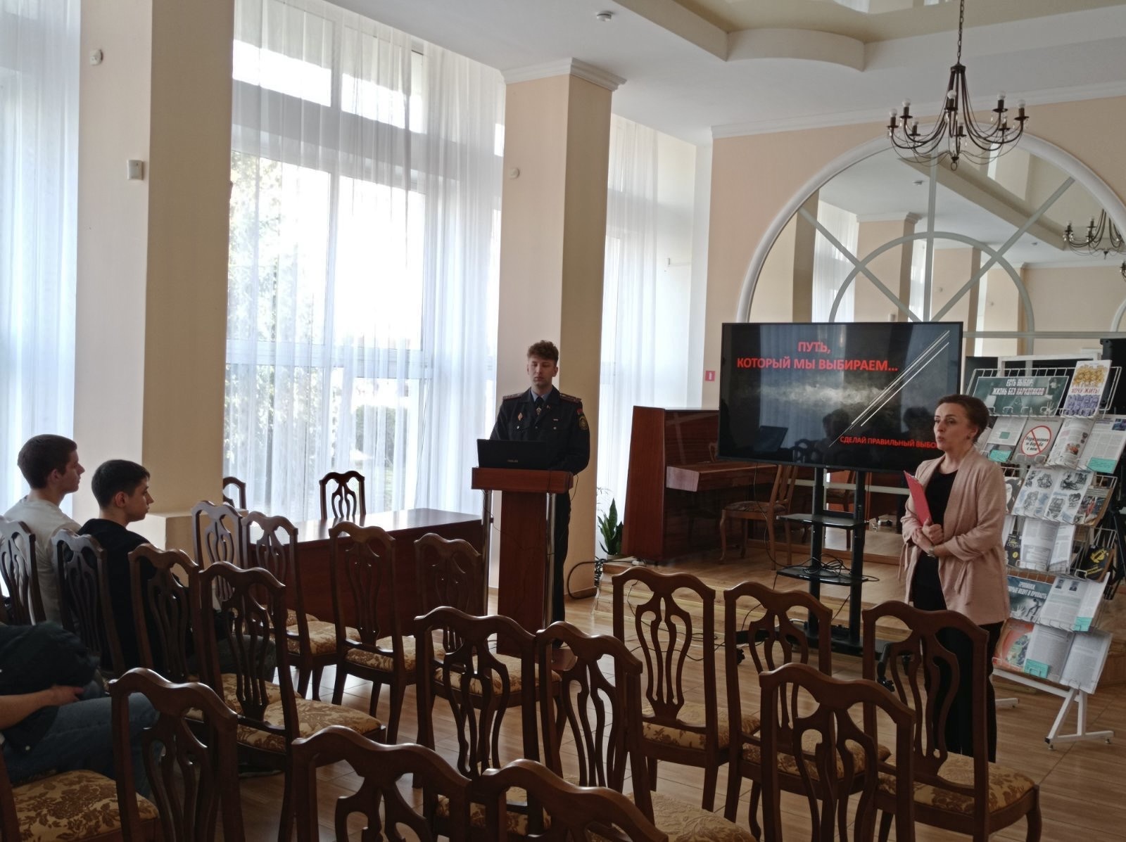 12.03.26 в центральной городской библиотеке им. А.С.Пушкина для учащихся группы СВТ-3 УО «Брестский государственный колледж связи» был проведен информационный час «Путь, который мы выбираем…», основной темой которого стала профилактика наркомании среди молодежи и разъяснение ответственности за незаконный оборот запрещенных веществ. Перед ребятами выступил оперуполномоченный ОНиПТЛ КМ ОВД администрации Ленинского района г.Бреста капитан милиции Овчинников Илья Александрович.