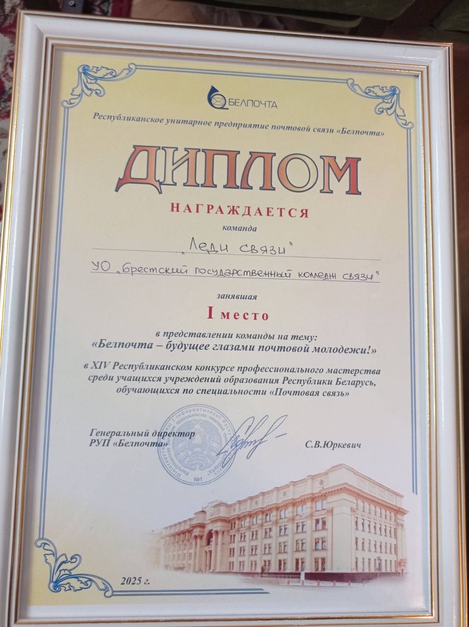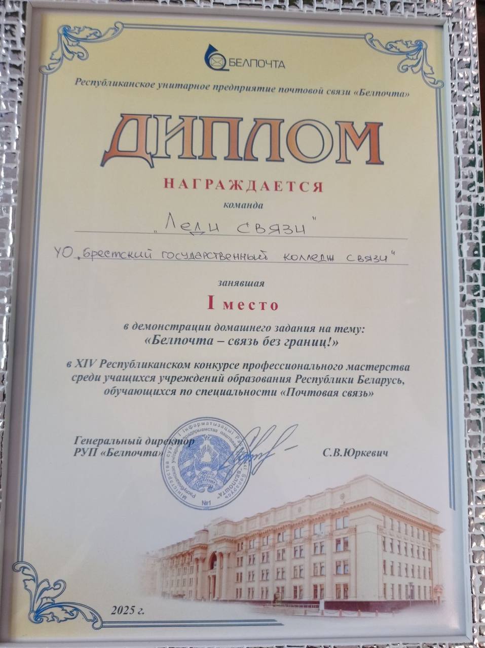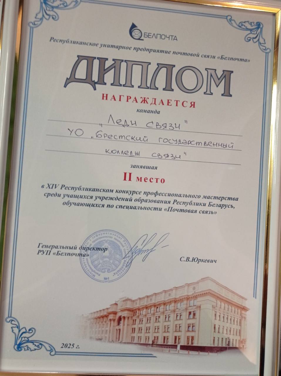 2 место в XIV Республиканском конкурсе профессионального мастерства среди учащихся учреждений образования Республики Беларусь, обучающихся по специальности «Почтовая связь»