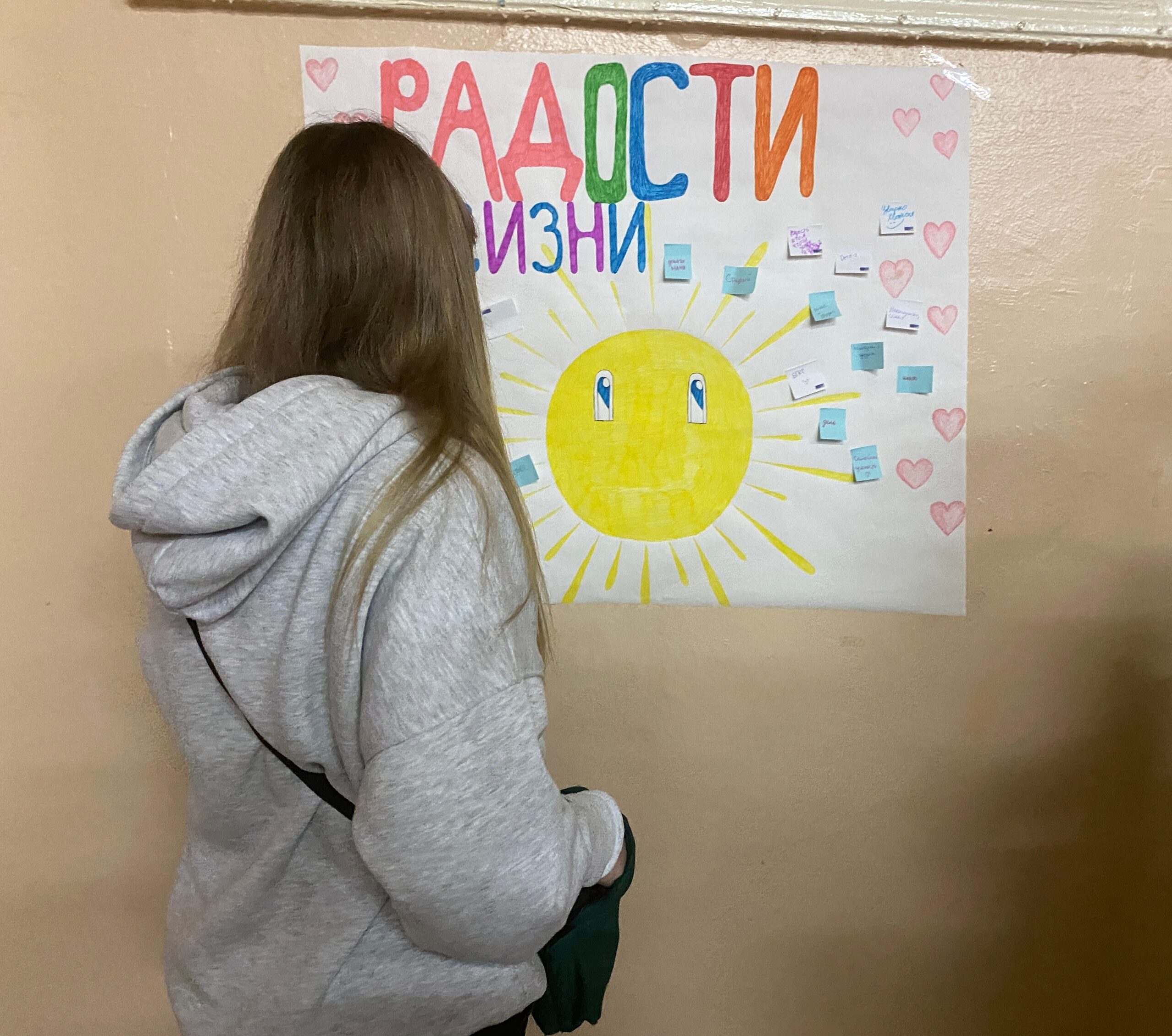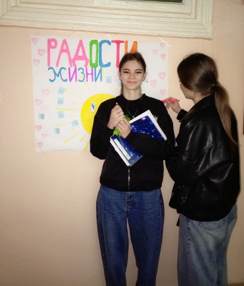 Цель акции направлена на улучшение эмоционального состояния обучающихся. Учащиеся во время проведения акции на листочках бумаги высказали свои размышления по поводу радостей жизни. Участники акции делились мыслями по поводу того, за что нужно любить жизнь.