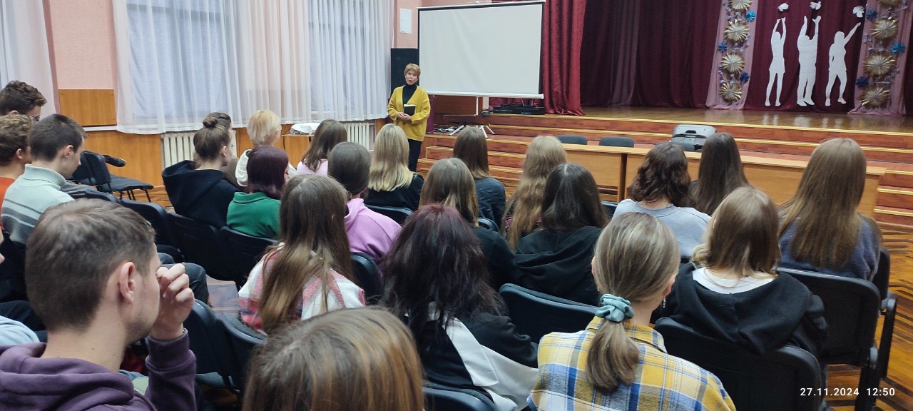 27.11.24 обучающиеся II и III курса встретились в актовом зале колледжа с заместителем начальника по идеологической работе Брестского вагонного участка БЖД Кушнерук Е.О. Тема выступления «Работа в студенческом отряде Брестского вагонного участка в июле-августе 2025 года проводником».