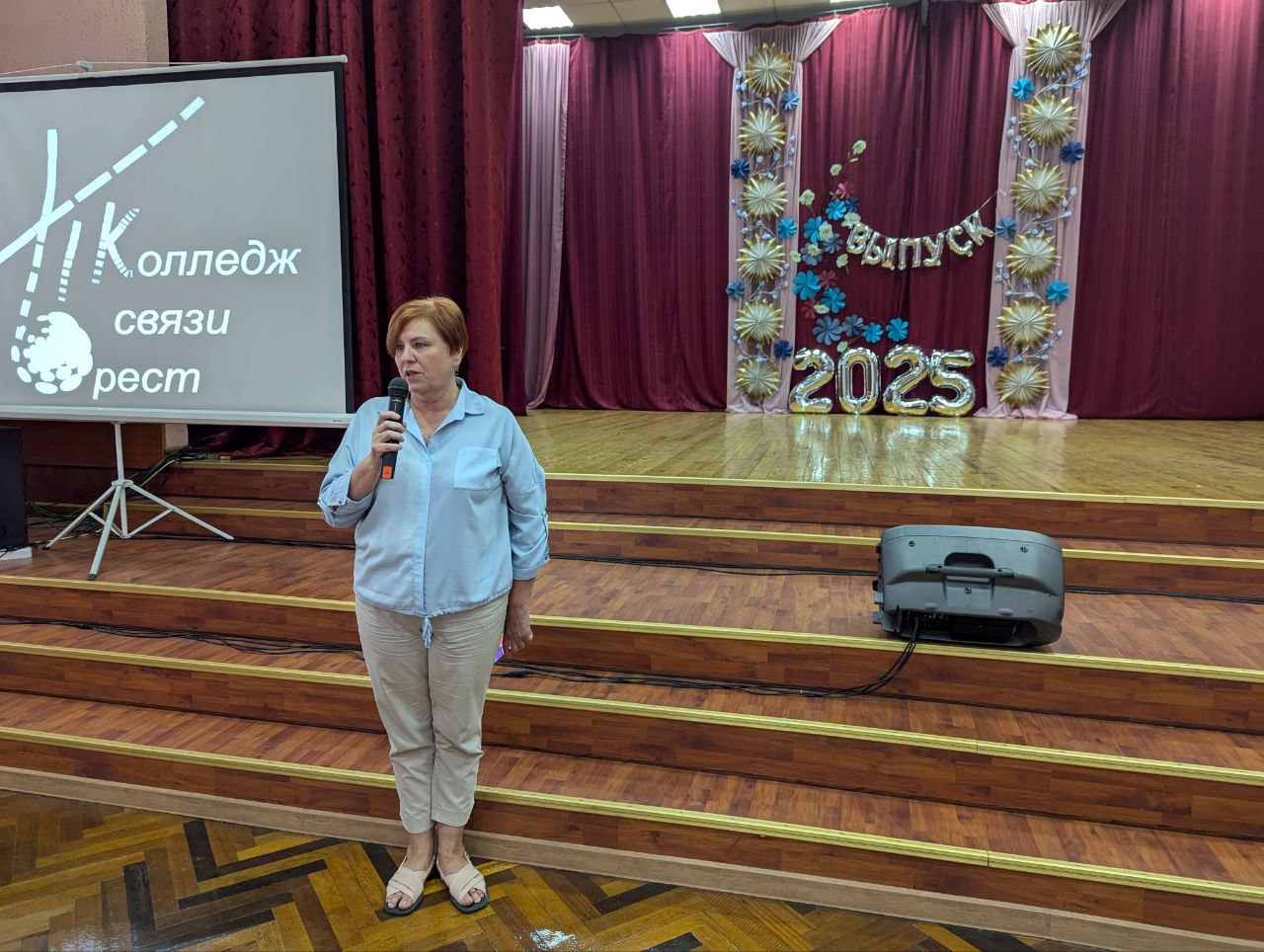 30.06 2025 149 обучающимся колледжа по специальностям: техник почтовой связи, секретарь-референт, финансовая деятельность, сети телекоммуникаций вручены дипломы о среднем специальном образовании.