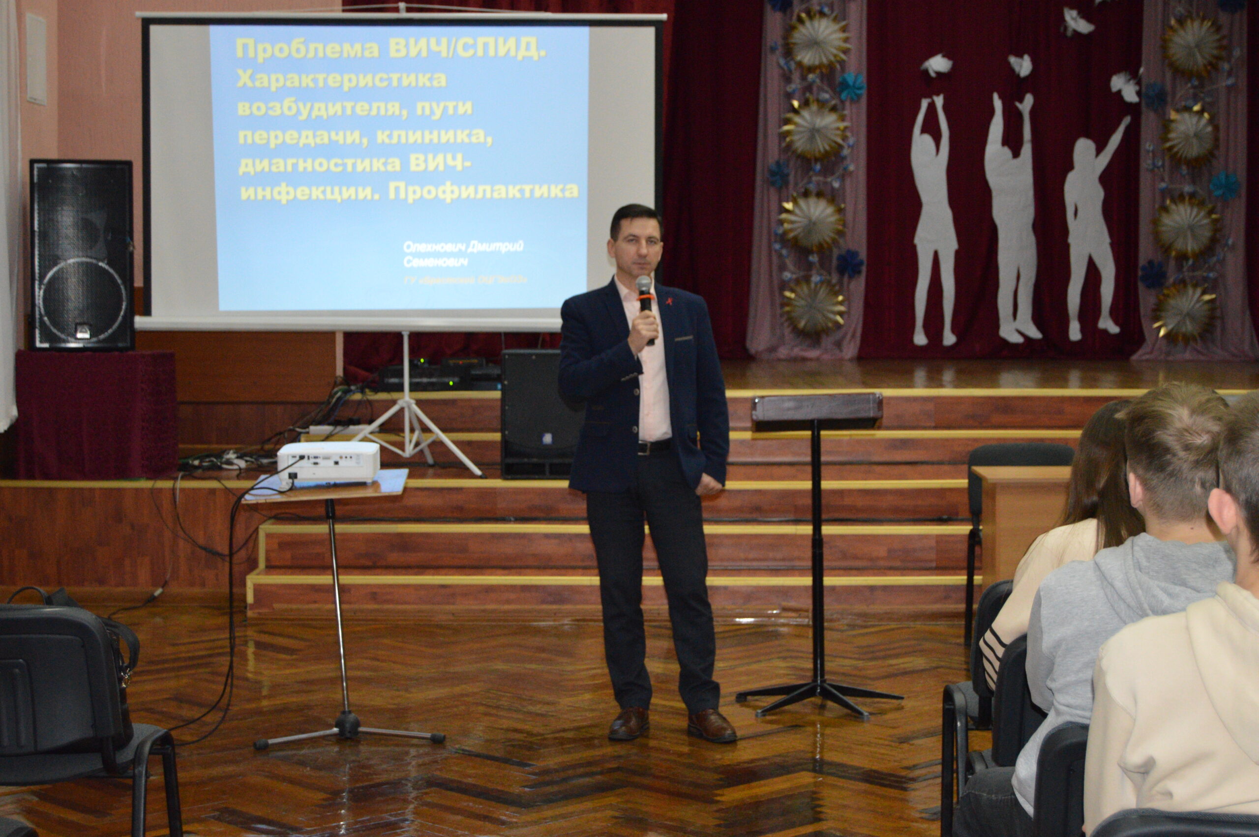 02.12. 24 в актовом зале колледжа состоялась встреча с Олехновичем Дмитрием Семеновичем, помощником врача эпидемиолога ГУ «Брестский ОЦГЭ и ОЗ». Мероприятие проводилось к Всемирному дню борьбы со СПИДом. Всемирный день борьбы со СПИДом всегда посвящен определенной теме. Тема этого года: «Право на здоровье – правильный путь!».