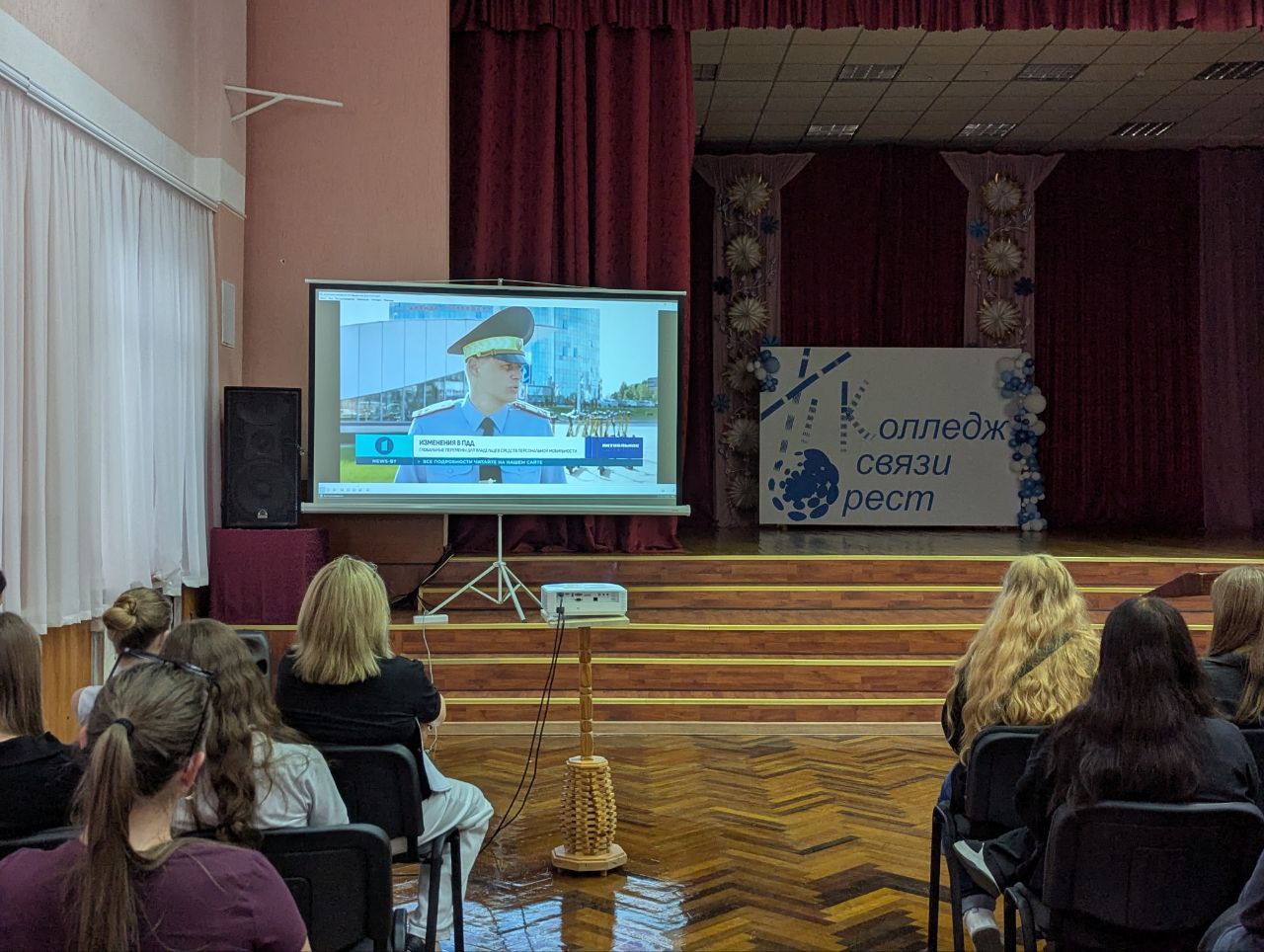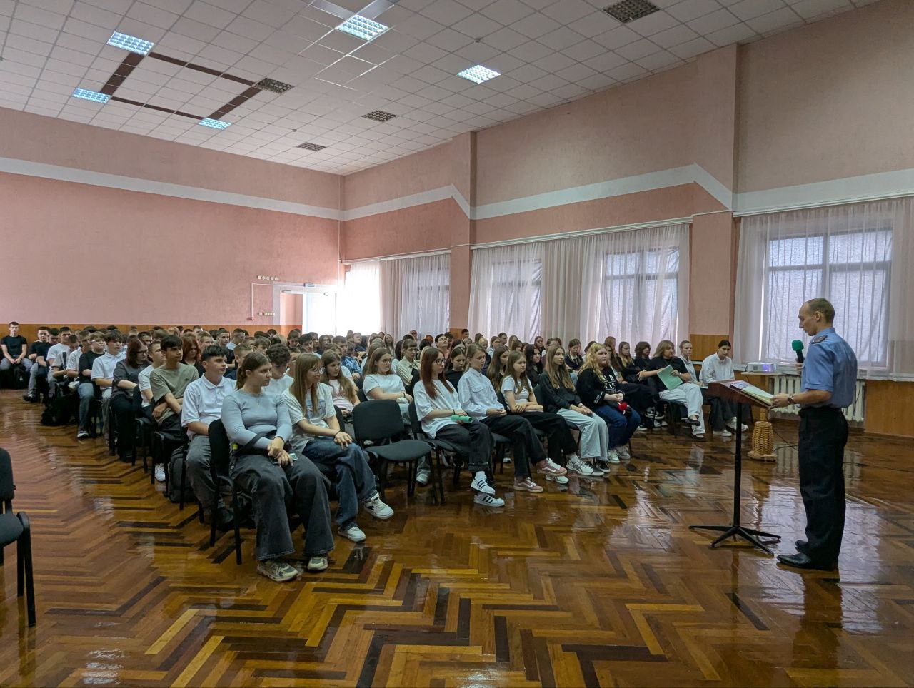 04.09.25 в актовом зале колледже проведена беседа оперуполномоченным ОПК КМ УВД администрации Московского района г. Бреста лейтенантом милиции Коржом И.А. для первокурсников.
