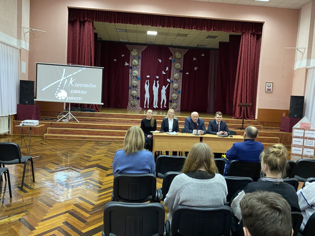 08.02.24 состоялась встреча учащихся с кандидатом в депутаты Палаты представителей Национального собрания Спепусь Ольгой Васильевной, директором ГСУСУ «Брестский областной центр олимпийского резерва по водным видам спорта» и кандидатом в депутаты Брестского областного Совета депутатов Макровым Андреем Владимировичем, главным врачом УЗ «Брестская центральная городская больница».